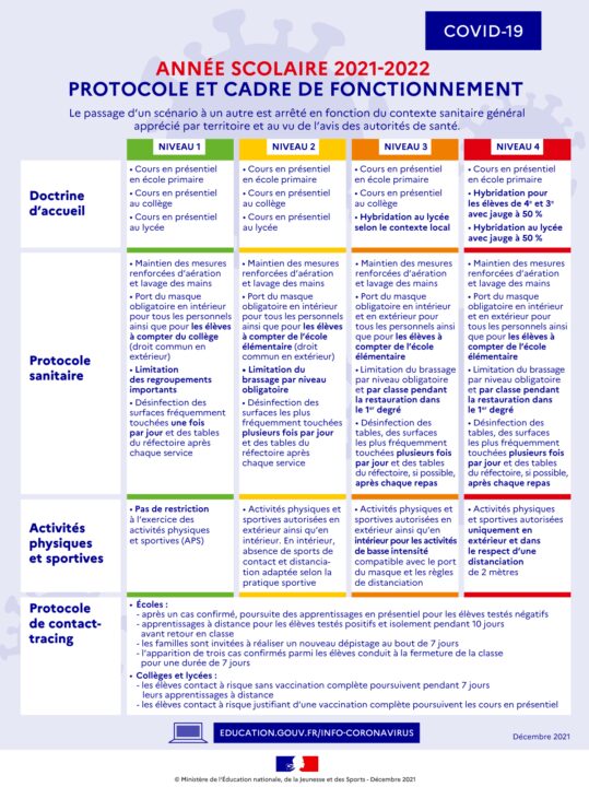 Cela doit être officialisé mais Le conseil de défense qui s’est déroulé ce matin a acté le passage au niveau 3 du protocole sanitaire pour les établissements scolaires.