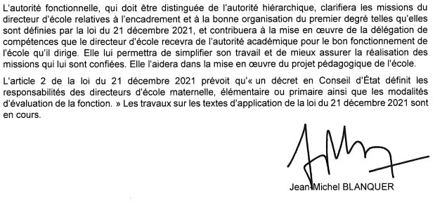 Même si les directeurs ne sont pas les supérieurs hiérarchiques y compris au regard de la loi votée en décembre 2022, ils pourraient se voir déléguer cette mission d’évaluation. En effet la loi créant la fonction de directeur d’école adoptée en décembre 2021 prévoit que des missions soient déléguées de la DSDEN aux directeurs. Ces missions doivent être définies prochainement dans un décret d’application.