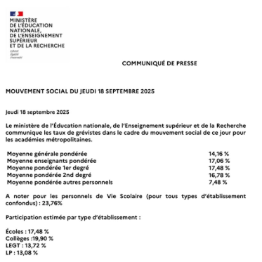 Le 18 septembre dernier, une grève intersyndicale avait mobilisé environ 17,5 % des enseignants du premier degré. Dans un précédent article, nous avions annoncé une prévision de 18,5 % de grévistes grâce à un sondage interne dans notre communauté : une estimation qui s’est révélée très proche du taux réel.